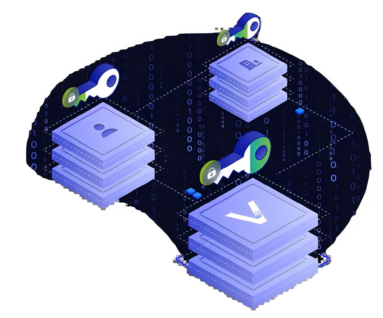 Split-key into multi-cloud architecture that eliminates single points of failure, effectively mitigating both external cyber threats and internal risks. By distributing control, B2Vault ensures robust security that protects enterprises from insider threats and sophisticated attacks alike.