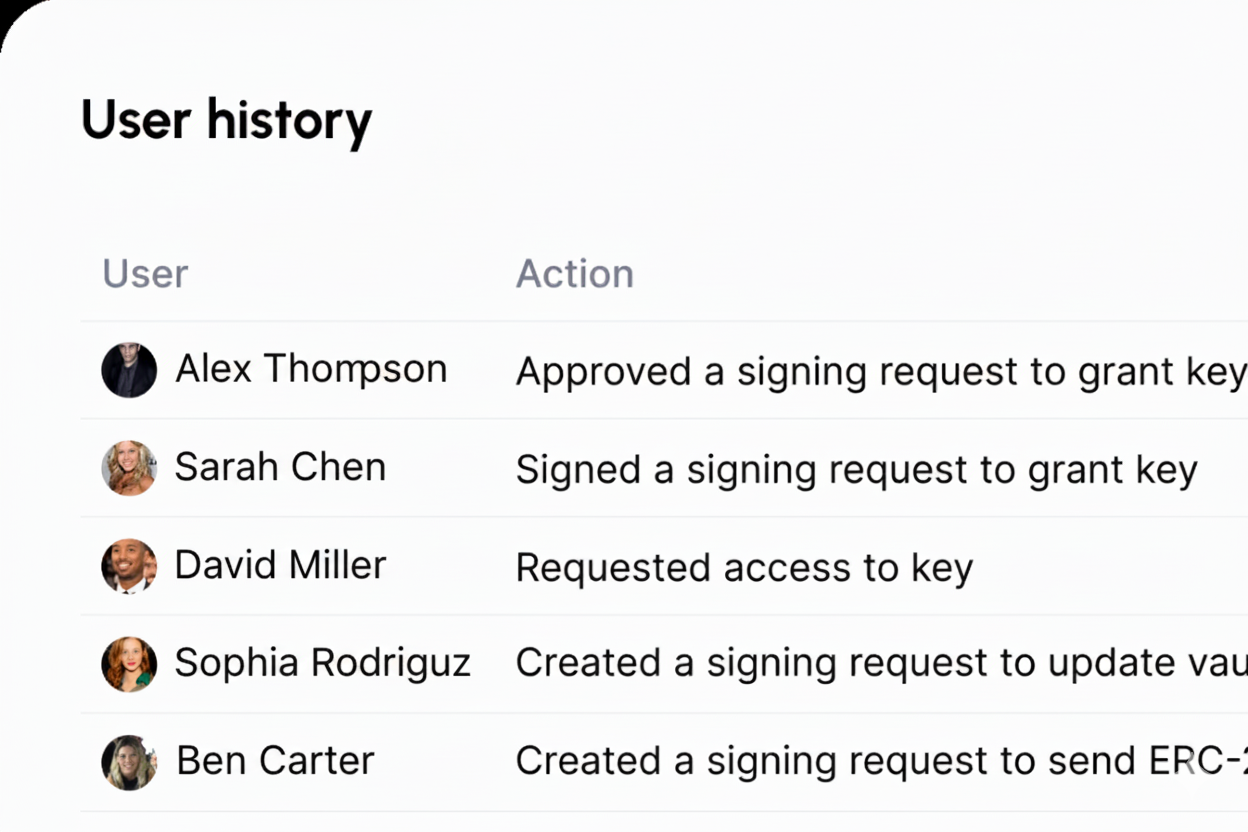 With our multi-party computation architecture, team members never have direct access to the private keys that hold your company’s assets.